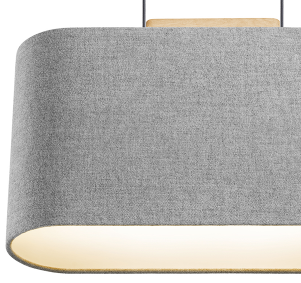 The Belmont Pendant Collection was a collaborative creation with designer Brad Ascalon re-envisioning the traditional fabric shade lamp but with the warmth and preciousness of hand crafted furniture. Belmont’s iconic, yet reductive form creates a natural canvas for displaying an exquisite array of textiles from premium wool to colorful woven fabrics that can be paired with a solid crafted oak wood armature.
