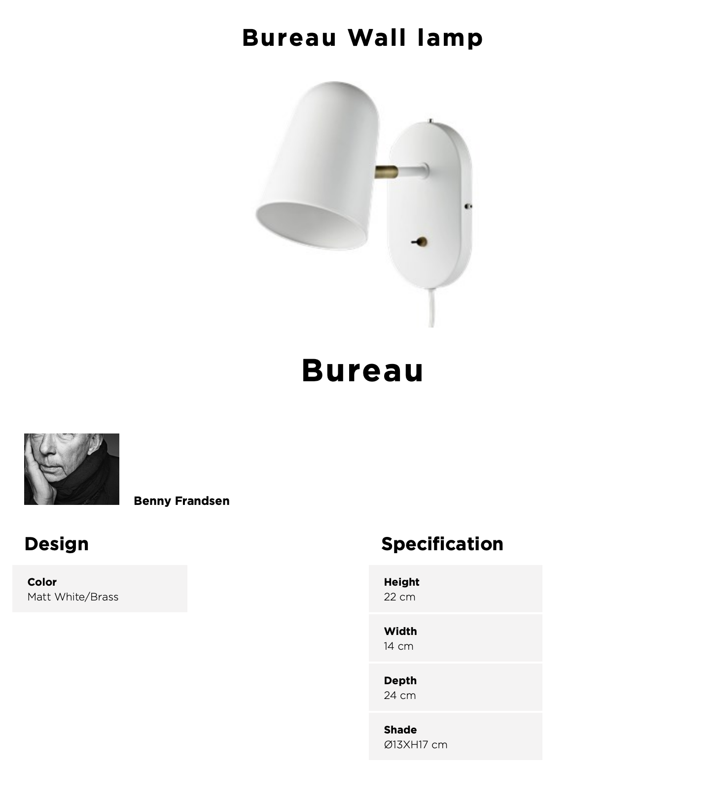 Bureau wall lamp - White - Bolia
